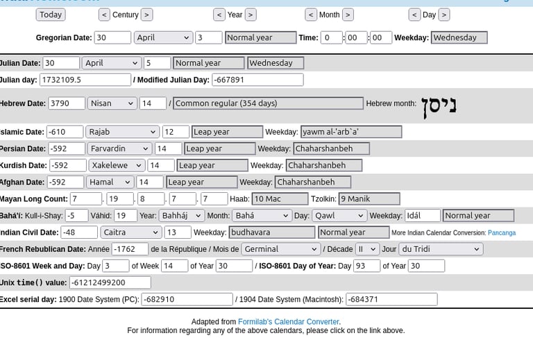 …and by the Hebcal and CalendarHome conversions. The analytical structure is airtight. Because the Biblical month begins with the new moon, NASA’s reconstructed lunar data allows us to determine Nisan 1, Nisan 14, and Nisan 17 for every ancient year. In every plausible crucifixion year (28–33 CE), Nisan 17, the day of Firstfruits and the completion of ‘three days and three nights’- never falls on a Sunday. The Gospels never say Yeshua rose on Sunday; they say He was found risen on Sunday. Therefore, the Sunday‑resurrection tradition is not supported by Scripture, the Biblical calendar, or the astronomical record. The heavens and the Torah agree: the resurrection completes at the close of Shabbat, on Nisan 17, the Feast of Firstfruits.